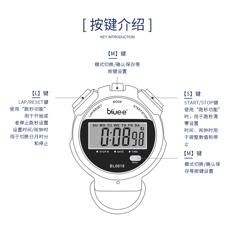 BLUEE HD Electronic Stopwatch Timer Fitness Training Referee Competition Special Sports Running Meter Alarm 0818