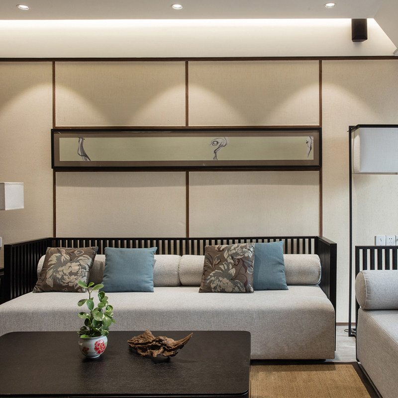 New Chinese Living Room Cloth Art Sofa Full Solid Wood Sofa Combination Manufacturer Direct Marketing Modern Simplicity Design Custom Furniture