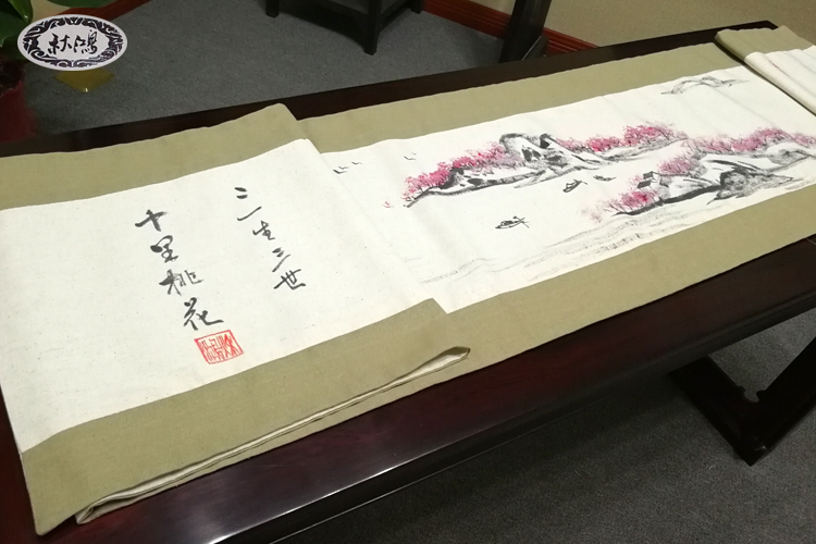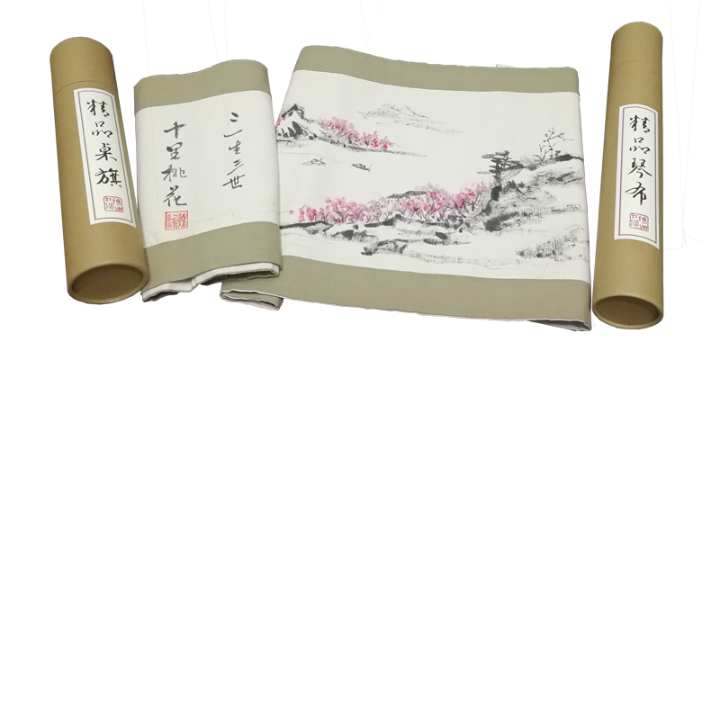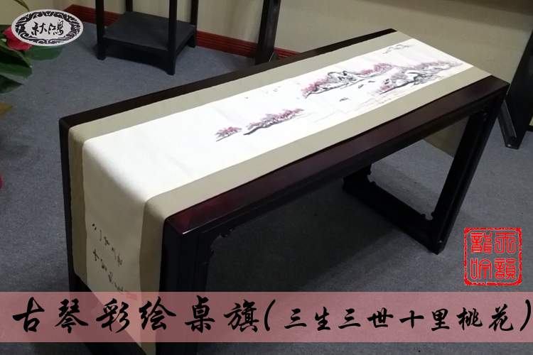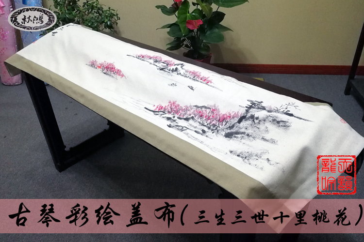Qiuhong brand hand-painted guqin table flag cover cloth Zen dust-proof cloth tablecloth linen material Sansheng Sanshi Shili Peach Blossom