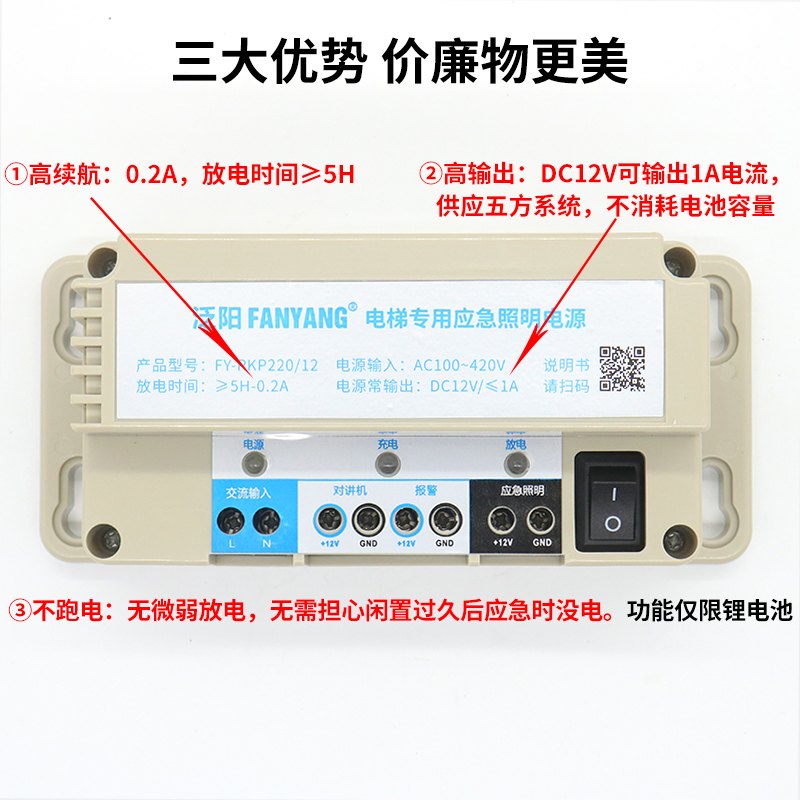 Emergency power supply 12V lighting battery 6V 24V five-way intercom lithium battery RKP220 elevator accessories