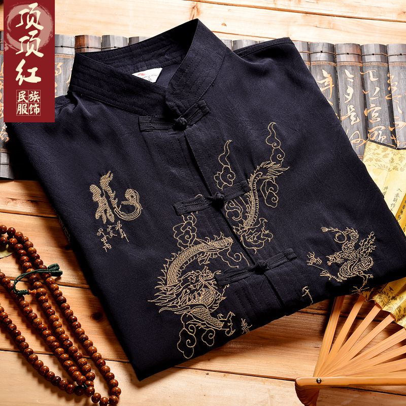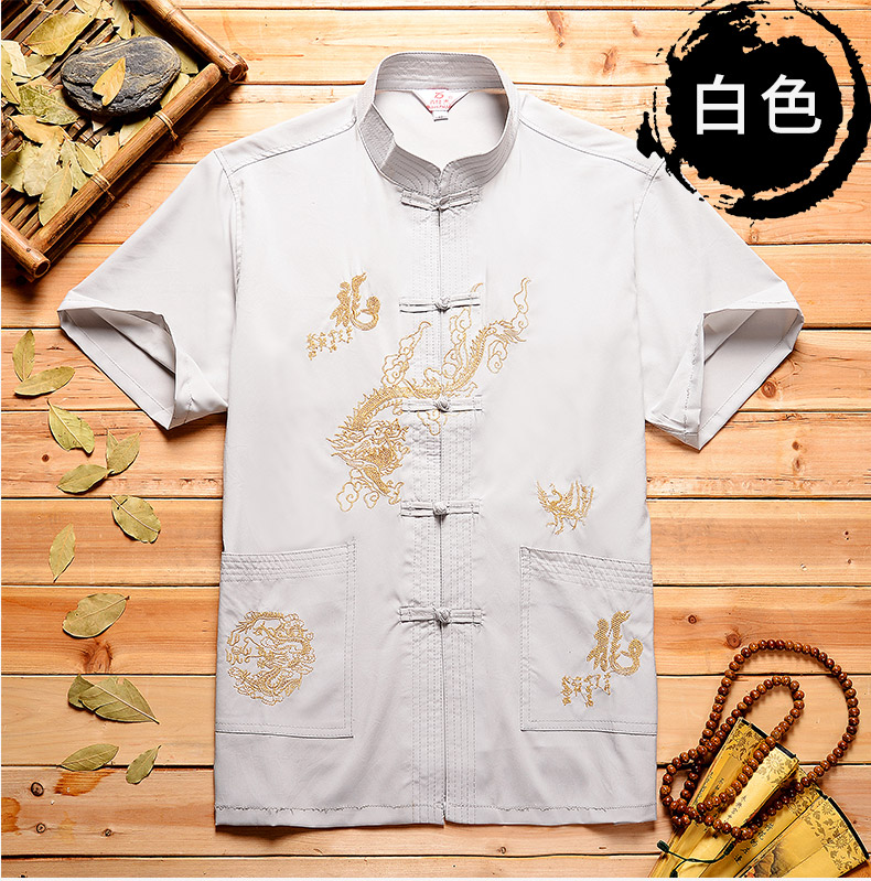 Summer Men Tang Small Small Snap Smooth Silk Middle Size Chinese Summer Half-sleeved Shirt Grandpa Men
