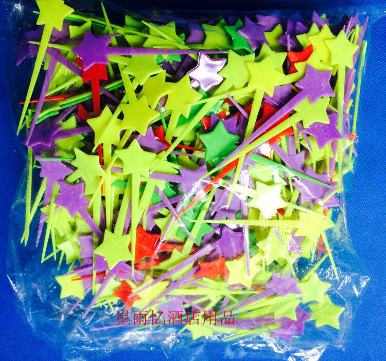 Pentagram Fruit Sign Disposable Plastic Food Fruit Fork Fruit Needle Starred Fruit Needle 500 Packets