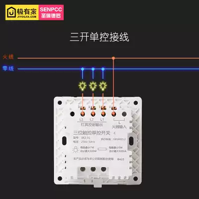 GT smart switch Smart home single firewire touch switch Three-open single control Champagne gold touch switch 86
