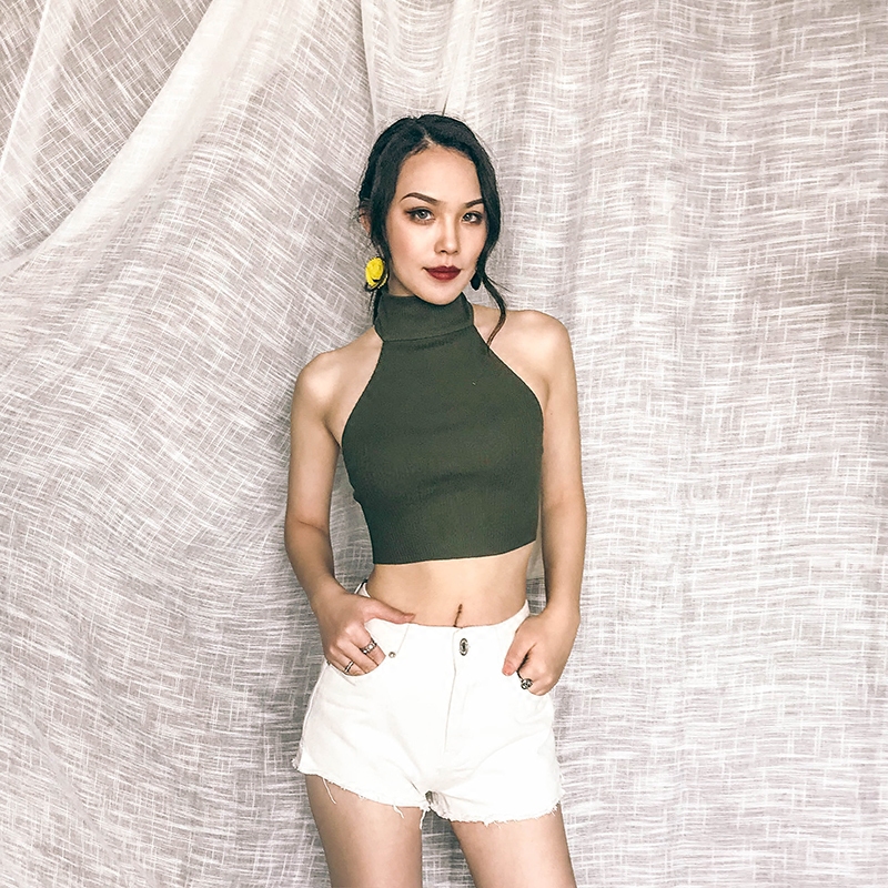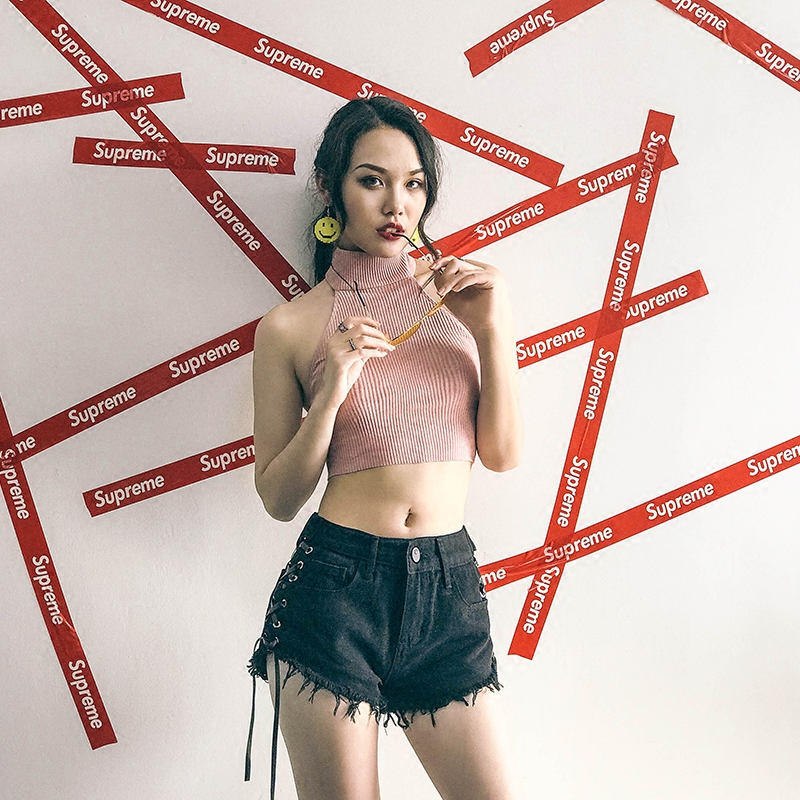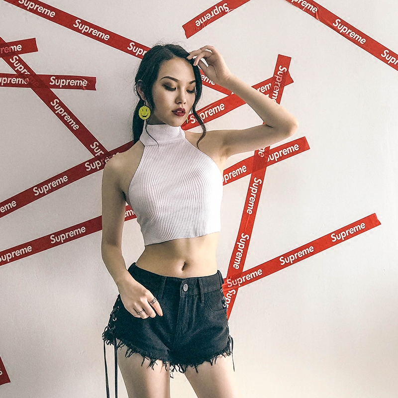 European and American body sleeveless careless machine harness ruffles back short hanging neck smear outside wearing vest wrapped chest blouses female summer
