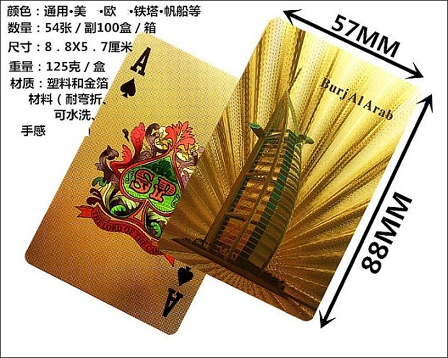 F2076 Playing Cards Collection) 8 Dubai Atlantis Hotel) Tourist Souvenir) Tuihau Gold foil)