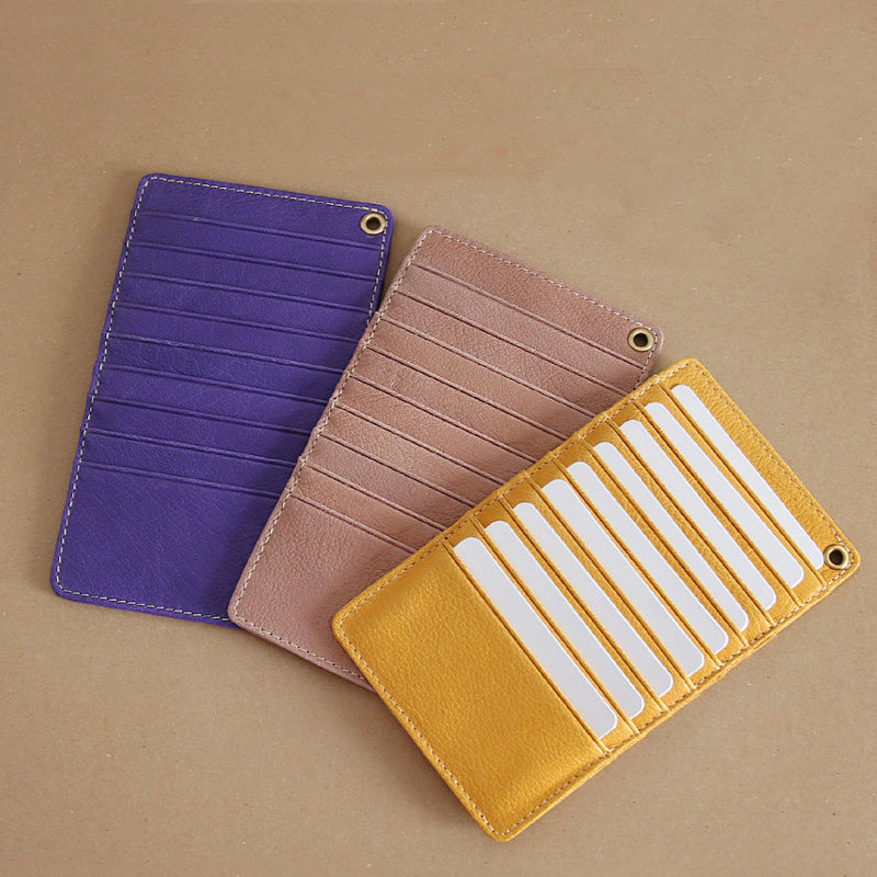 Card bag men's short handmade leather multi-function bank card bag Simple ultra-thin vertical multi-card card bag for women