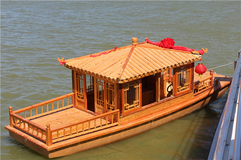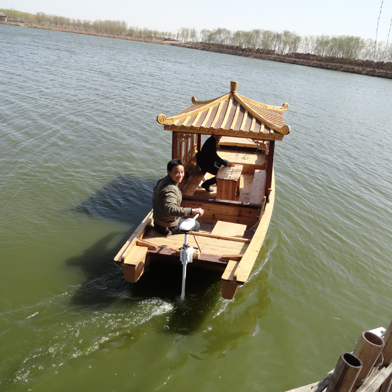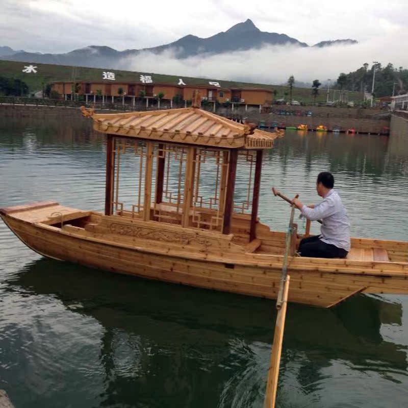 Wooden boat fishing boat Ucanopy boat solid wood European-style wooden boat water two ends pointed decorated with high and low tent old imitation ancient painting boat boat