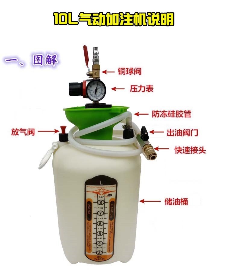 10L pneumatic gearbox oil filling machine 10L pneumatic filling machine (hose section) 5 special quick access valves quick to pick up 10L pumping and double purpose filling machine 8L cramp double-purpose filling machine