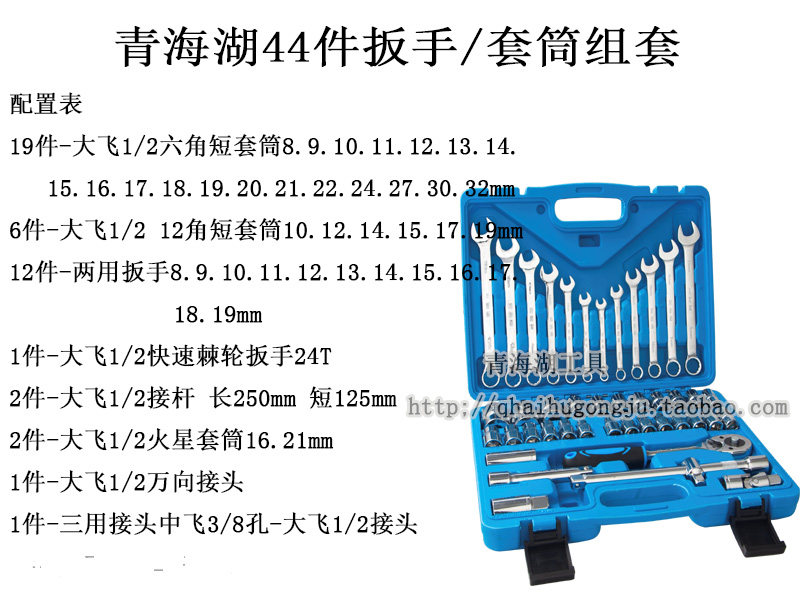 Qinghai Lake tool 38 pieces 44 pieces set of wrench glove barrel comprehensive set handmade ratchet mirror chrome puller set