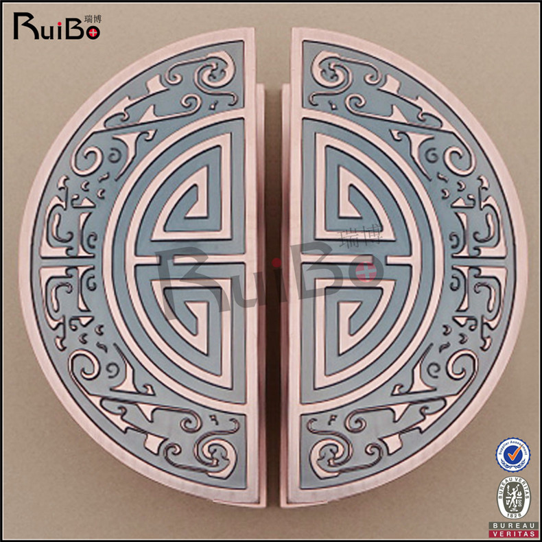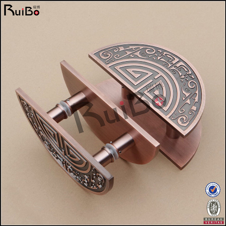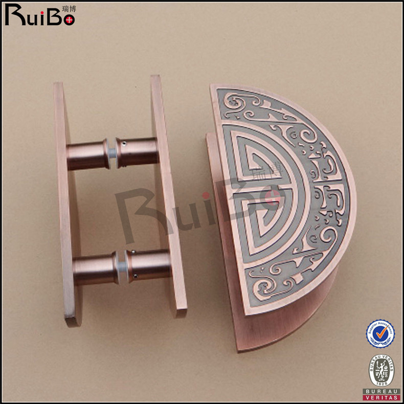 Stainless steel metal carving Chinese style bronze framed glass hotel wooden door sliding door sliding door hi word semicircle handle