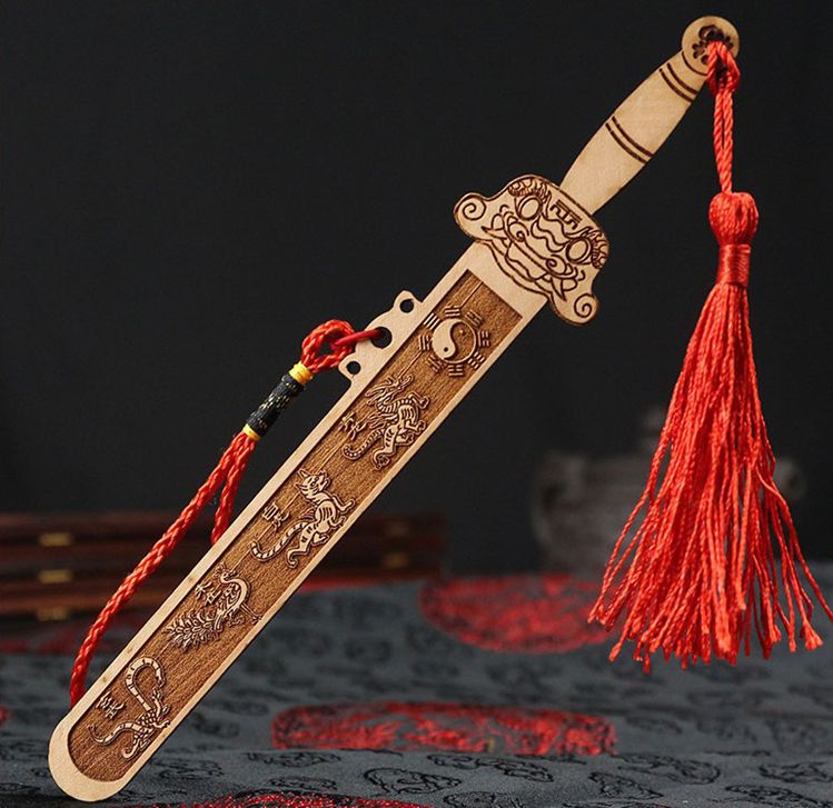 Peach Wood Quadrillion Beasts Wood Sculpture Peach Wood Sword Green Dragon White Tiger Juxuan Xengwu Home Pendant