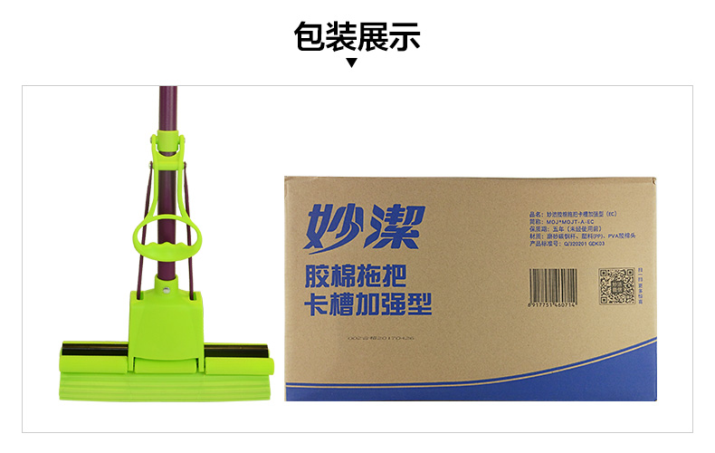 Miaojie sponge mop card slot reinforced household roller squeezing water-free hand-absorbing mop mop rubber cotton mop head