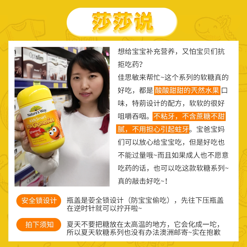Australia's Nature'sWay Jiasmin Gummy Calcium Children's Gummy Vitamins No Added Multi-flavor VC Zinc
