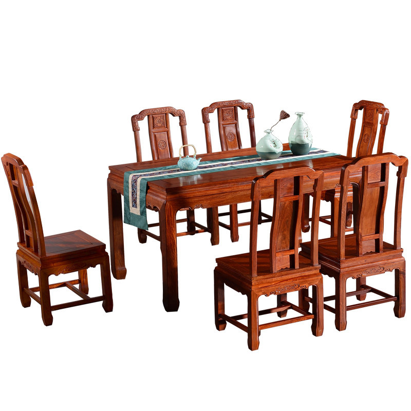 National standard mahogany furniture big fruit red sandalwood rectangular table Western dining table Myanmar rosewood Chinese-style all solid wood round table dining table