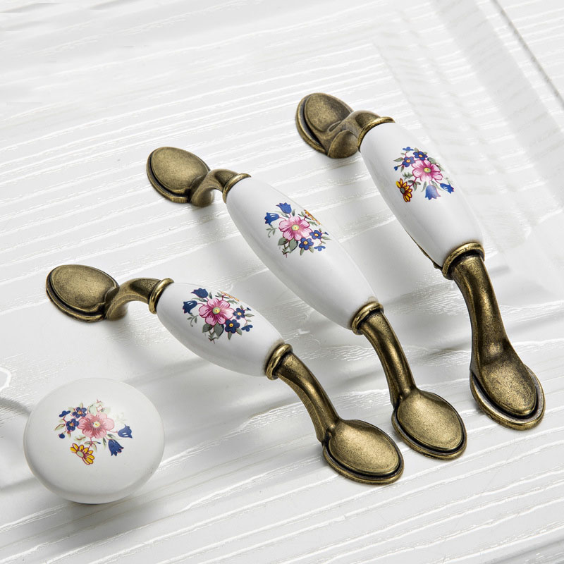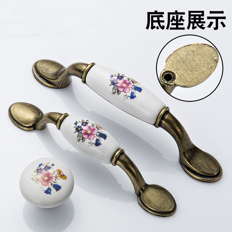 Hole distance 76 96128m m Eurostyle antique printed ceramic handle wardrobe drawers whole closet cabinet door single-hole small handle