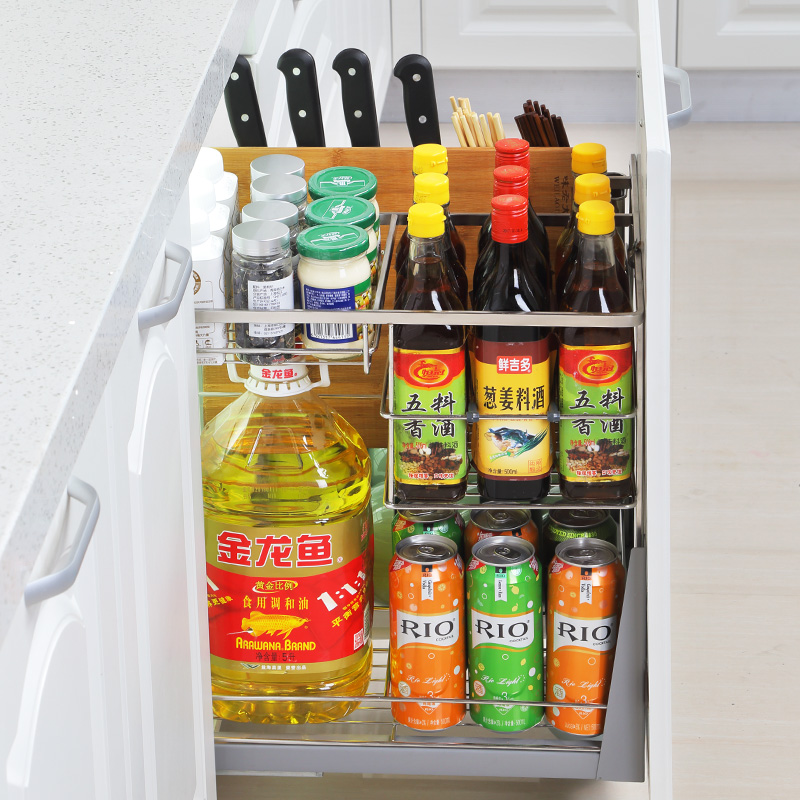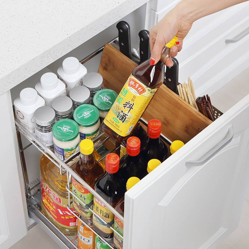 Timini Seasoning Basket Kitchen Cabinet 304 Stainless Steel Drawer Type Seasoning Kitchen Cabinet Storage Rack Built-in Vertical