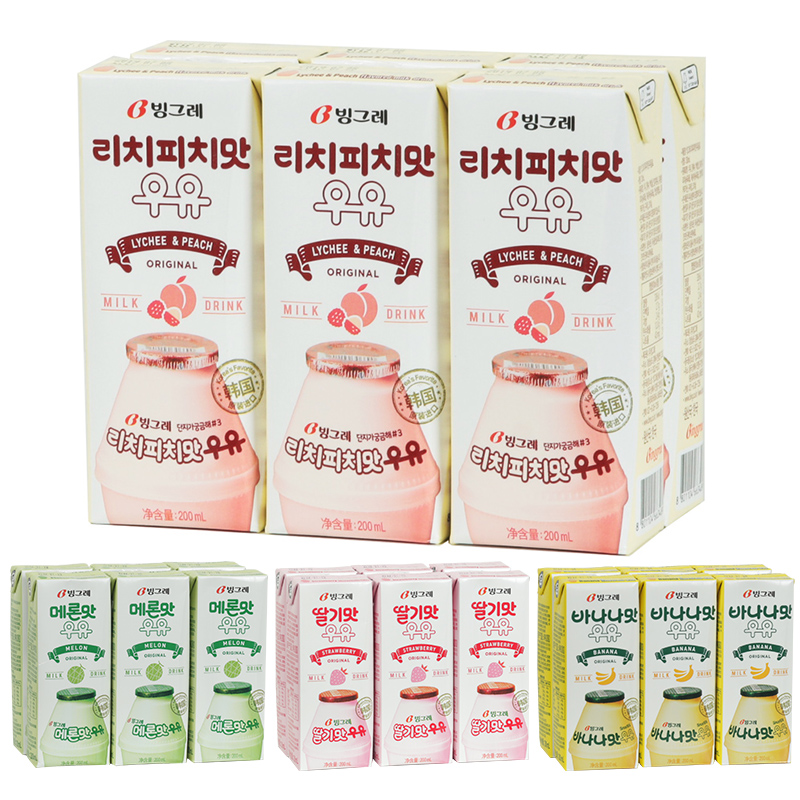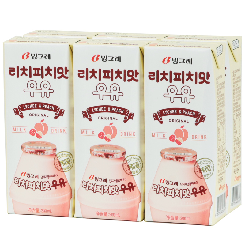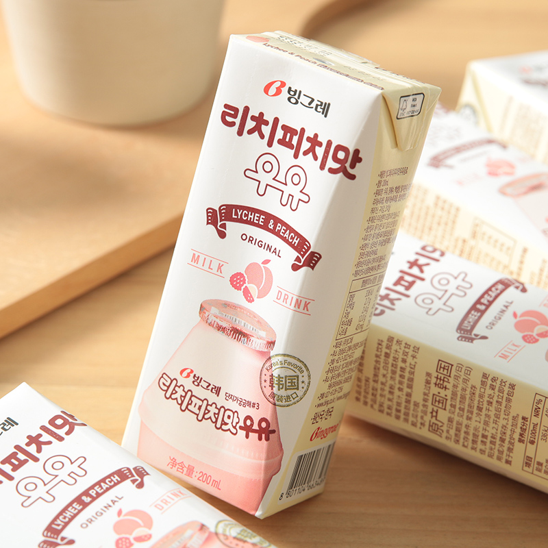 6 boxes of Korean imported Bingrui fruit milk drink Banana Litchi strawberry flavor children's breakfast milk food