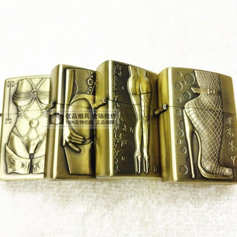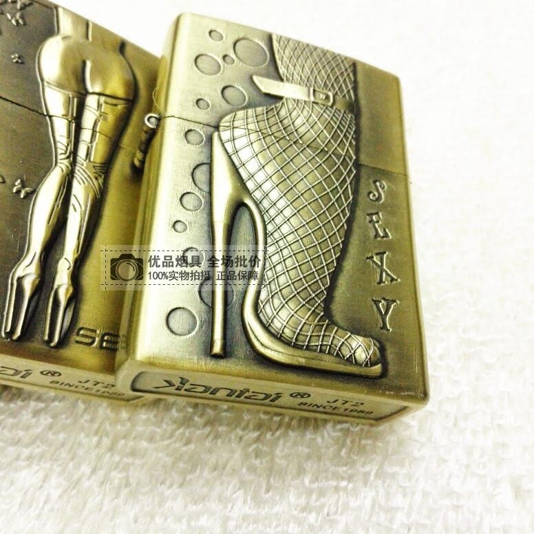 Homegrown brand Jiantai kerosene windproof lighter personality Thickened Bronze color Silk Beauty Gift Box T66
