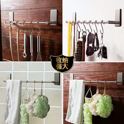 Punch-free 304 stainless steel hanging Bar kitchen rack bathroom dressing room towel rack door rear sticky hook wall adhesive hook