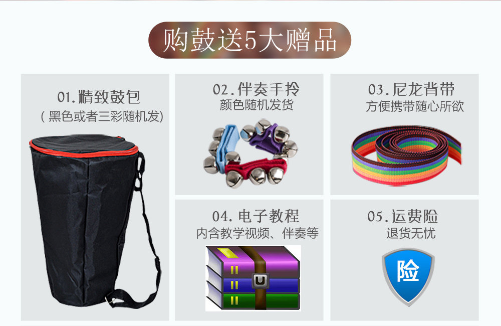 African drum Children's standard 10 inch 12 inch kindergarten whole wood handmade tambourine Adult beginner old goatskin drum