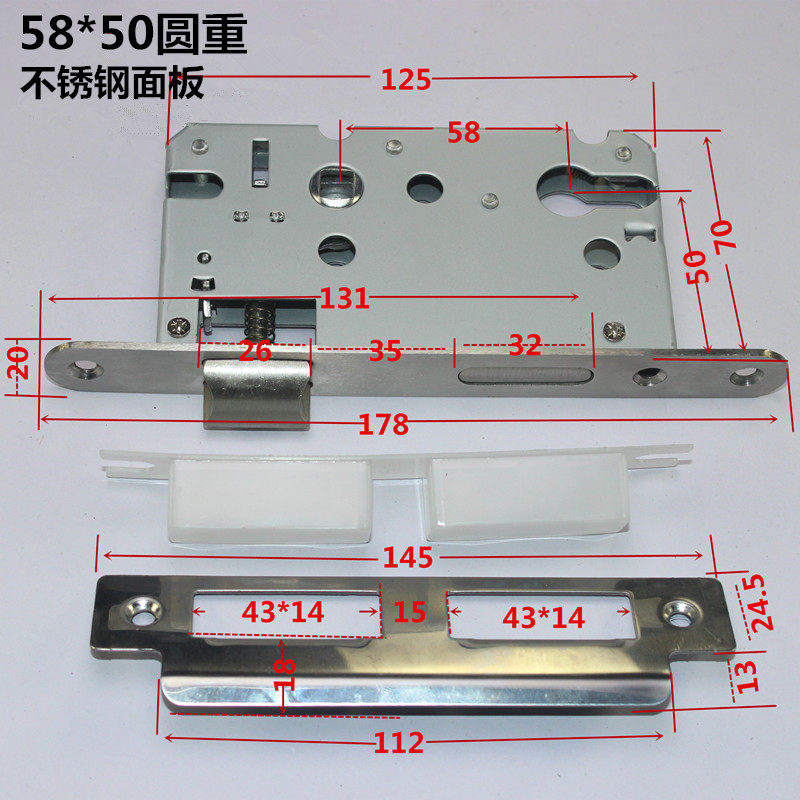 Caper round mouth heavy-duty 58*50 lock body 178 long change lock liner core handle door lock accessories heavy lock body