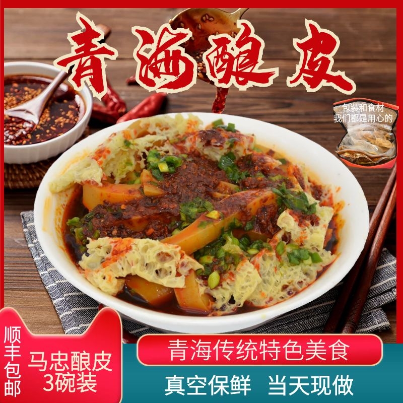 Qinghai special gourmet snack Ma Zhong stuffed skin 3 bowls vacuum instant food bag with authentic delicious specialty cold skin