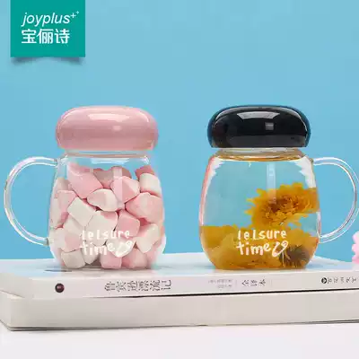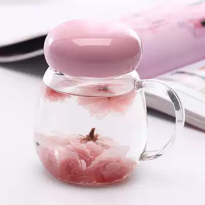 Net red water cup Portable Korean glass Children and students fresh and cute flower tea cup ins accompanying cup with handle