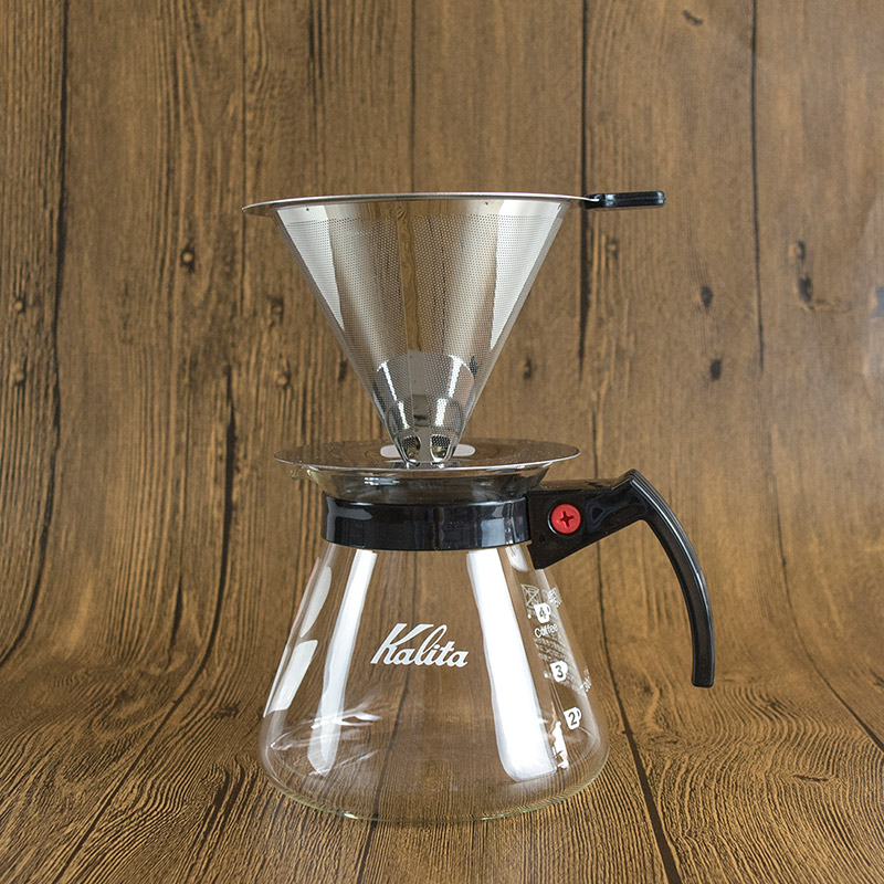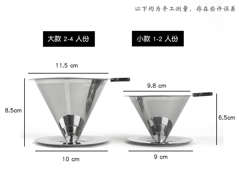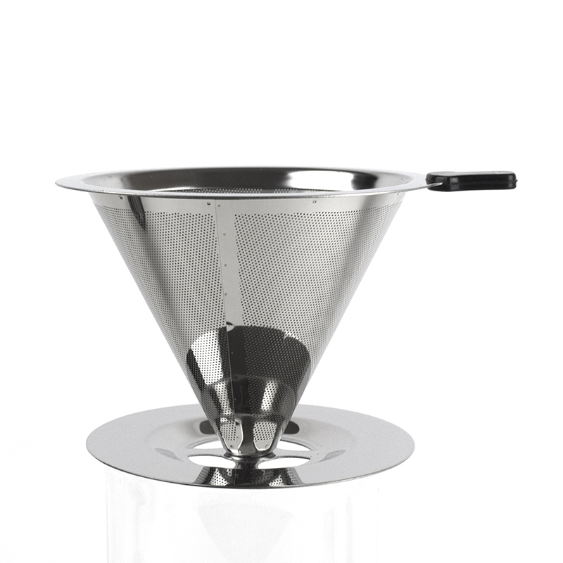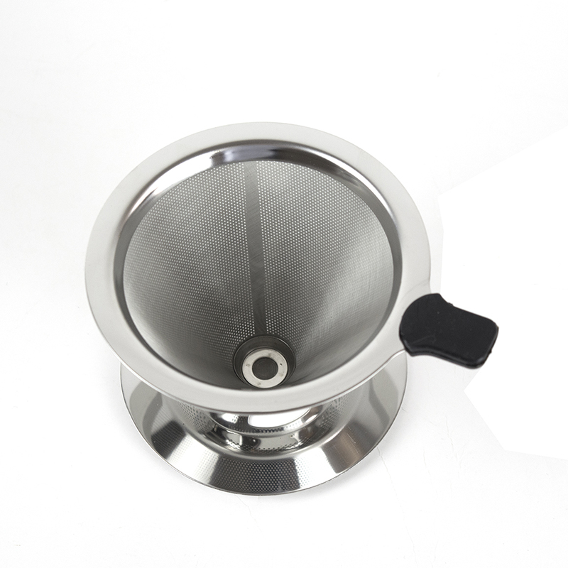 Stainless steel double layer coffee filter funnel type hand punching coffee filter with chassis free of filter paper