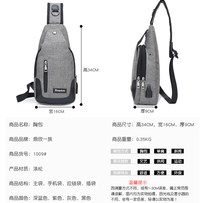 New chest bag men's messenger bag fashion sports tide bag casual women's bag Oxford cloth student shoulder bag chest bag