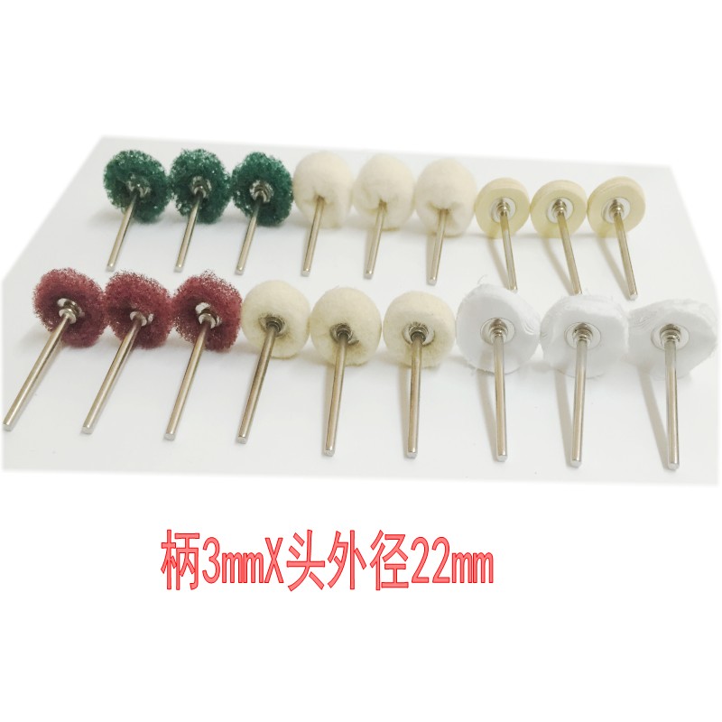 White Cloth Groove Polished Flower Head Mini Brushed Nylon Grinding Head T Type With Shank Electric Grinding Suspended Grinding Wheel 3mm shank