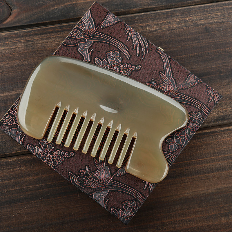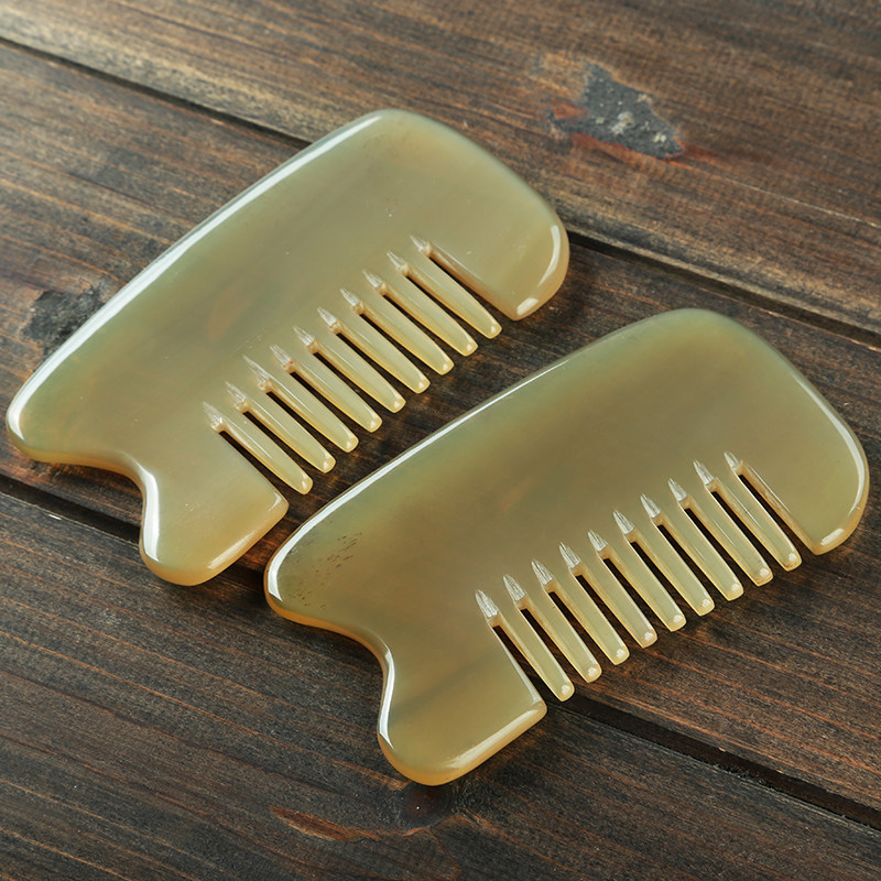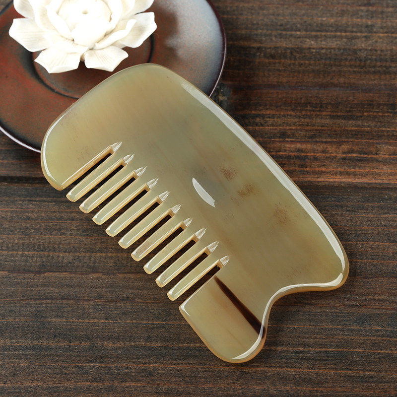 Natural White Buffalo Horn Scraping Comb Head Massage Multifunction