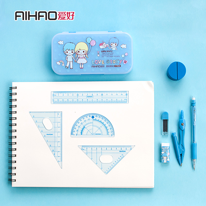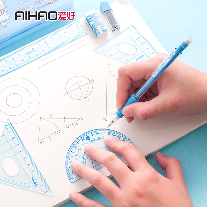 Hobby Compasses Ruler set for primary and middle school students examination drawing with ruler triangular plate Protractor gauge 8 pieces