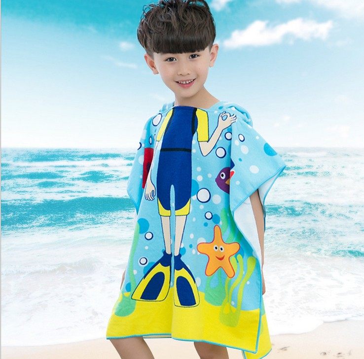 Cartoon Children Beach Towels Cloak bath towels with hat ultra-fine fiber male and female cuddly cloak bathrobe covered head bathing suit