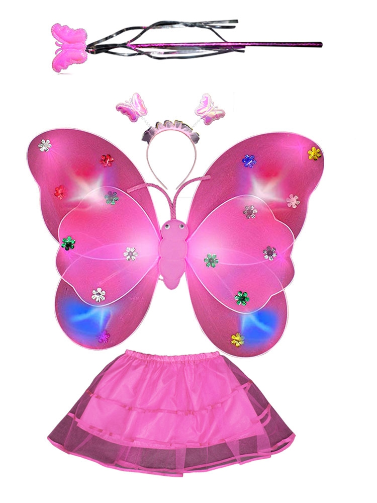 Pink luminous butterfly four pieces (head hoop * magic wand * wings * short skirt) blue luminous butterfly four pieces (head hoop * magic wand * winged * short skirt) big red luminous butterfly four pieces (head hoop)