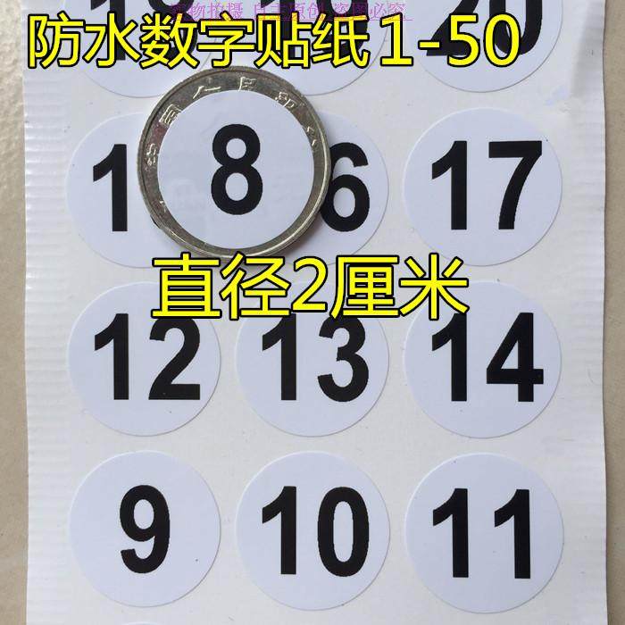 2CM round number number sticker wine glass file number waterproof number sticker black on white 1-99 number label