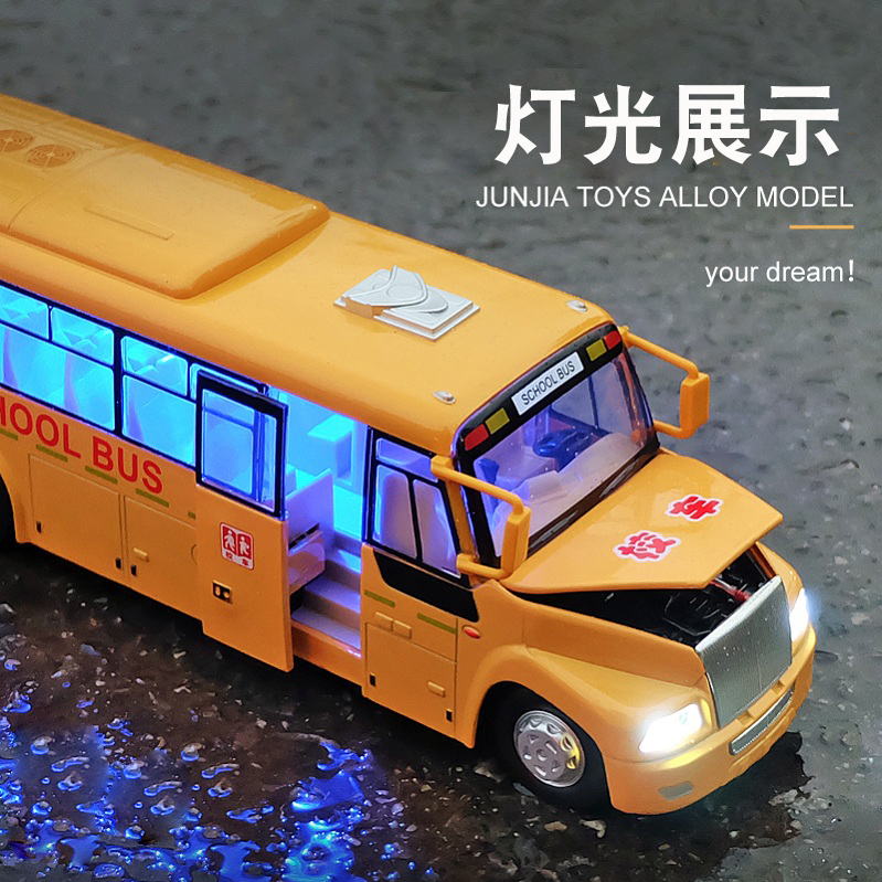 Kawei School Bus Toy Large Boy Alloy Open Door Bus Model Simulation Bus Children's Toy Car