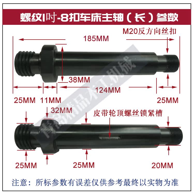 Woodworking lathe spindle DIY homemade lathe Original assorted threaded Specifications 1 inch 8 buckle M33-3 5 Wood Chaco