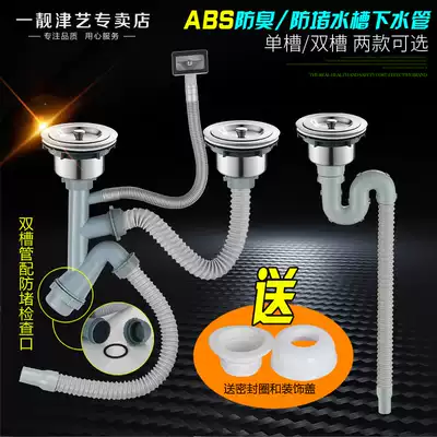 Single sink sewer set (with steel wire sewer pipe) warranty for three years, insect-proof sealing ring decorative cover double sink sewer set (with anti-blocking cleaning inspection port) warranty for three years insect-proof seal