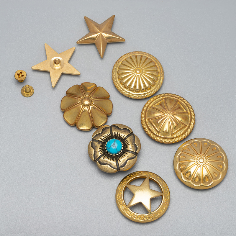 Handmade leather accessories Casting fine polish pure copper treasury buckle Chrysanthemum nail decorative tin Bracelet decorative silver