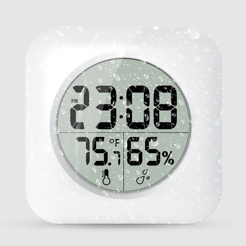 Creative Bathroom Waterproof Hanging Bell Kitchen minimalist mute suction cup clock Temperature and humidity meter Living Room Mini Electronic Clock Watch