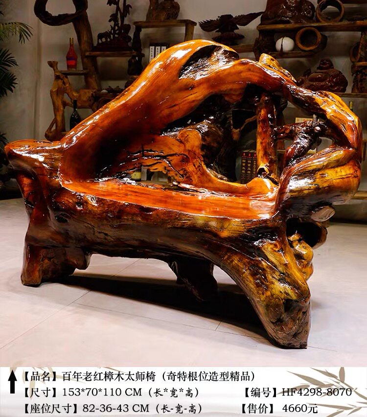 Root Carving Back Chair Leisure Chair Classical Taishi Chair Natural Solid Wood Fine Furniture