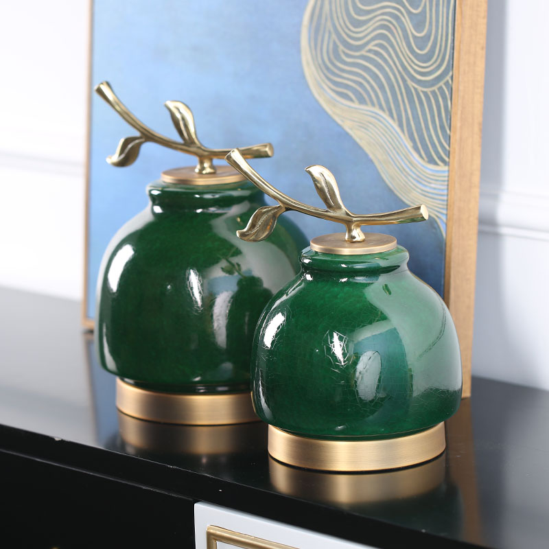 New Chinese Xuan Guan Decoration Living Room TV Cabinet Swing Piece Creative Ceramic Handicraft Green Furnishing-like board room