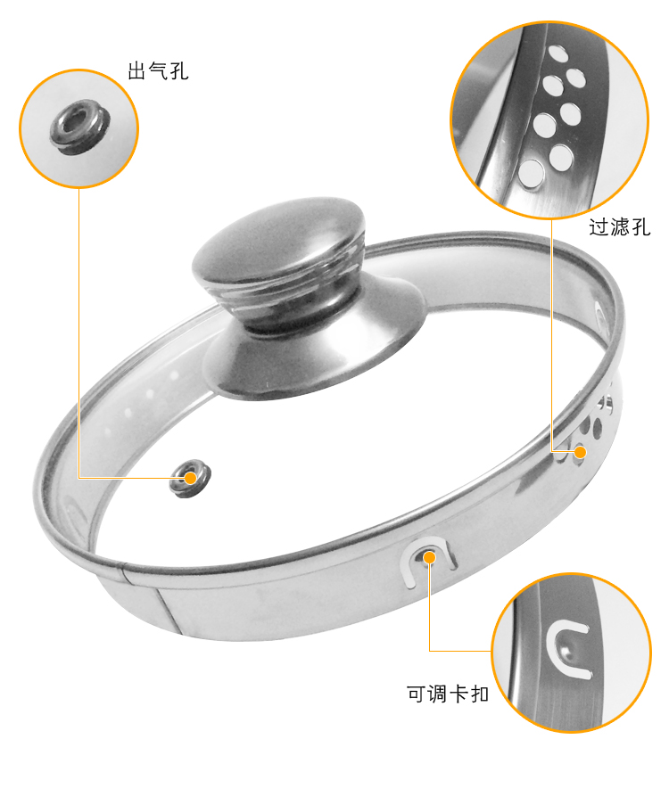 Universal Brands Wellness Pot Glass Lid Anti Burn 304 Stainless Steel Filter Cover 1 5L 1 8L 2L pot lid