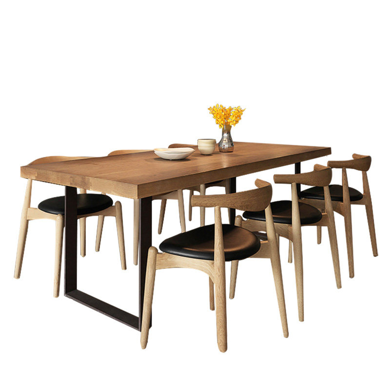 Nordic style leisure Wrought iron solid wood dining table Household Coffee shop Hall Canteen Hotel Rectangular restaurant table and chair combination
