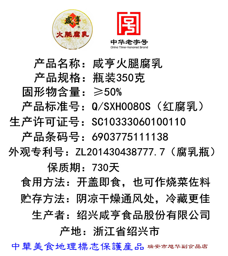 Chinese Old Word Number Shaoxing Zhengzong Salty Henn Ham Curd Curd 350g3 Bottle Recommended Price Family Practical Packaging