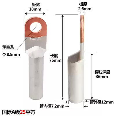 Copper and aluminum nose DTL25MM copper and aluminum transition connector cable copper and aluminum terminal wire nose NATIONAL standard class A