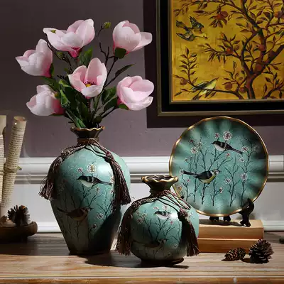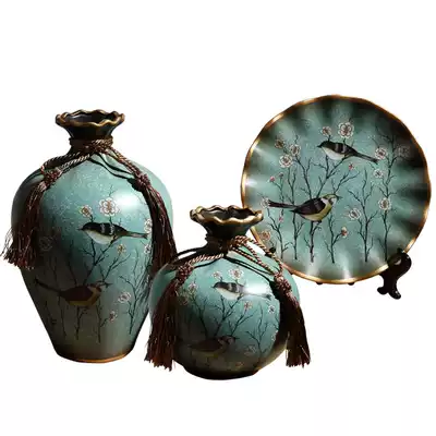 European-style ceramic vase decoration three-piece American home living room decoration luxury retro handicraft decoration