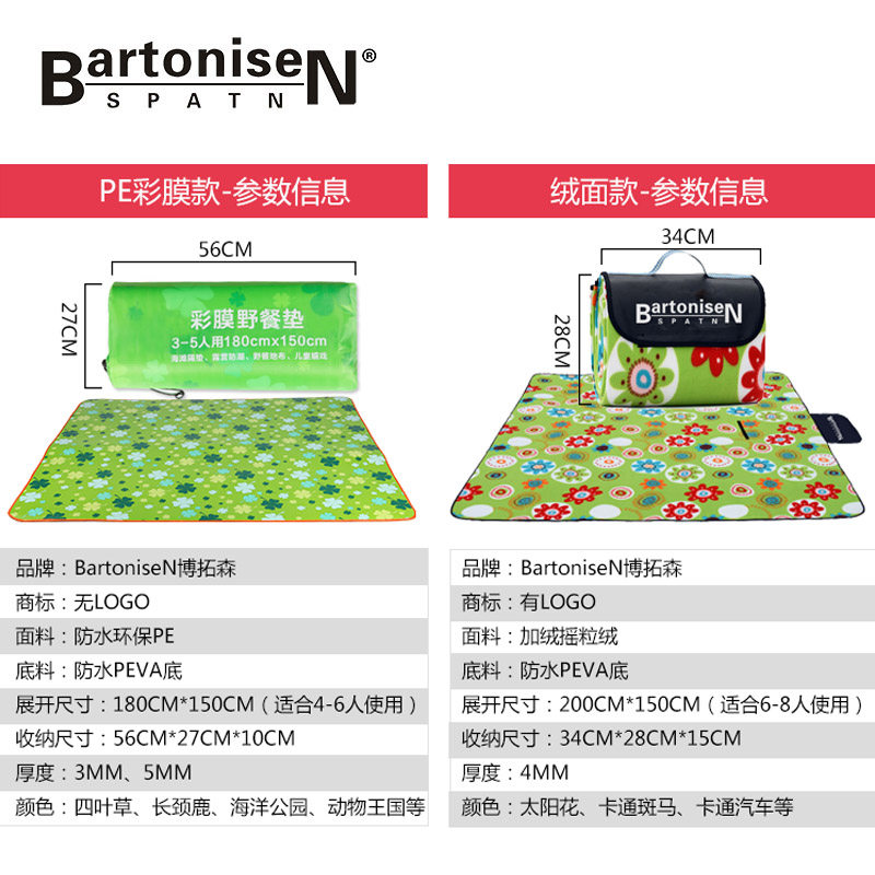BartoniseN Picnic Mat Outdoor Spring Cruise Mat Thickened Anti-Tide Mat Camping Waterproof Wild Cooking Mat Crawl to climb