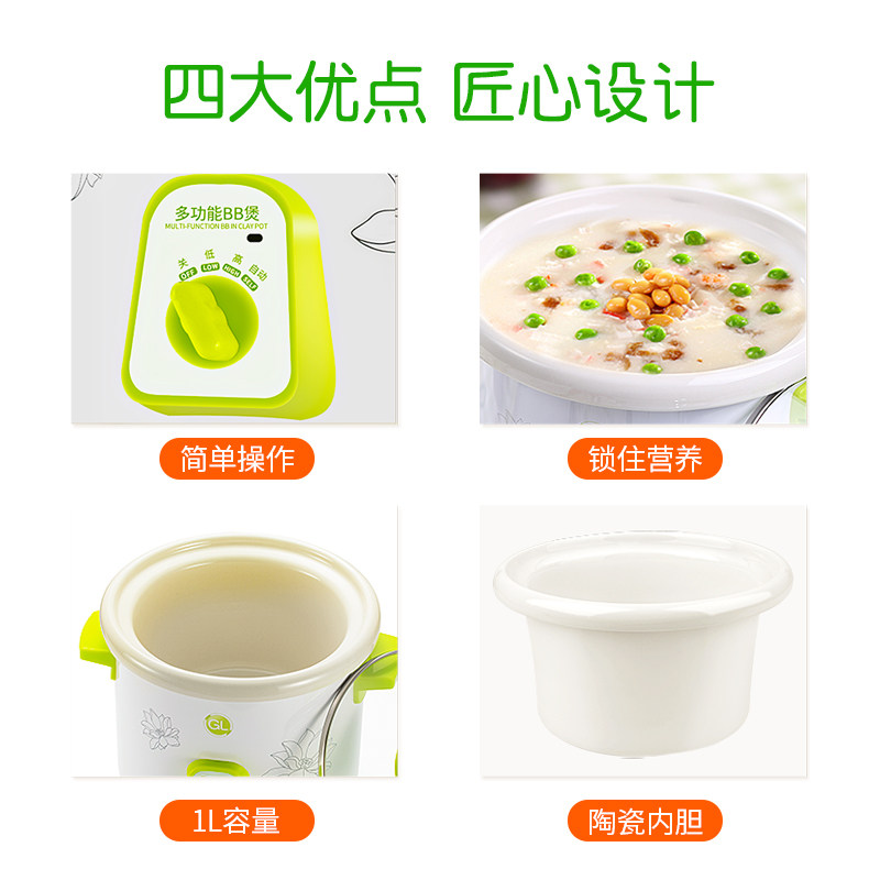 GL Gelang BB pot Baby baby pot Auxiliary food pot Multi-function soup small rice cooker Electric stew pot Porridge maker artifact