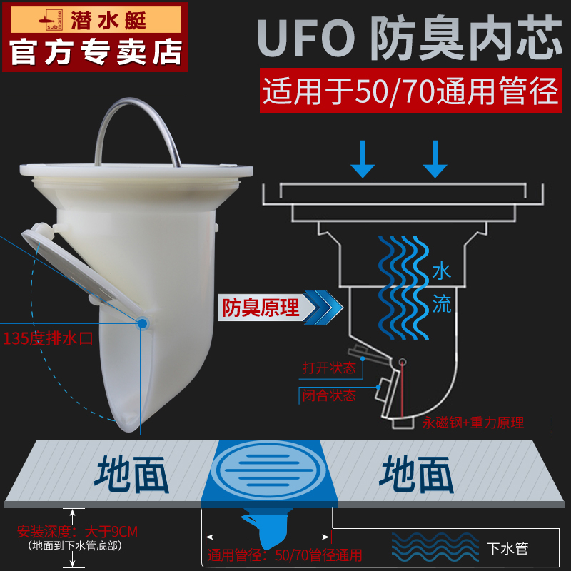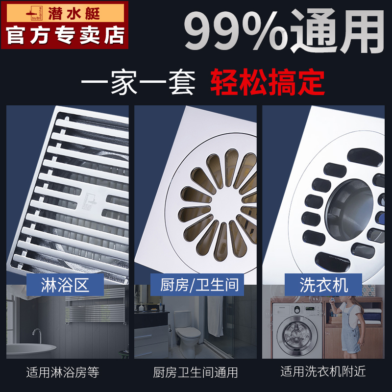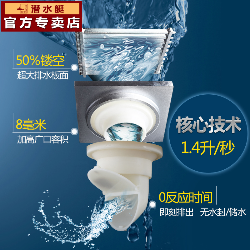 Submarine all copper anti-odor floor drain powder room large displacement shower room sewer anti-blockage yangtai washing machine dual-purpose